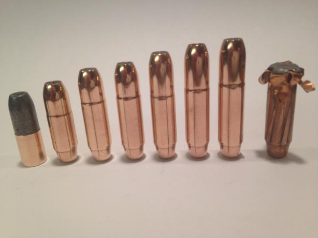 All G.I.(magazine) bullets can be loaded to the magazine rib or may be loaded long to touch rifling. The low velocity expansion threshold of this design is 850 fps.